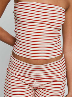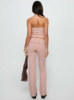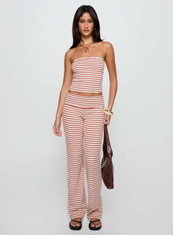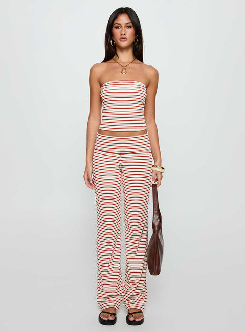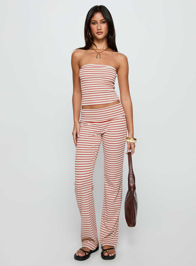- Crop top, silicon strip, folded-over pants, elasticated waistband, straight leg