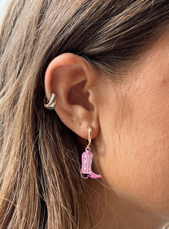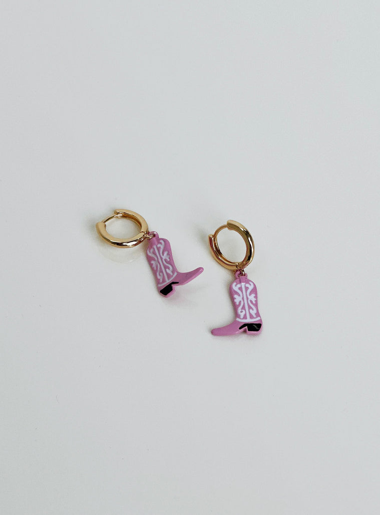 Earrings Hoop fastening Gold toned Cowboy boot drop charm