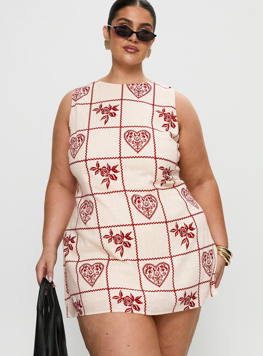 Alfalfa shift mini dress red floral check curve