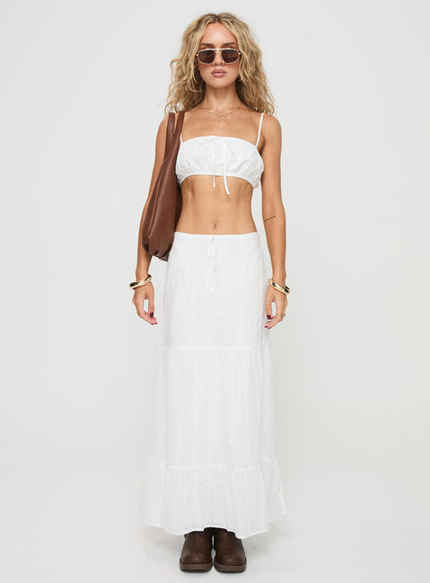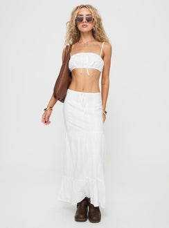 - Cropped top, bow detail at bust & waist, adjustable shoulder straps, elasticated bust, maxi skirt, invisible zip fastening at side