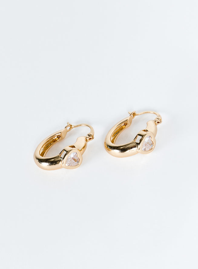 Gold-toned earrings Hoop design, clasp fastening, diamante detail