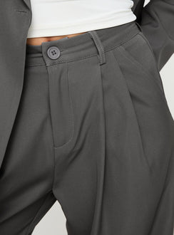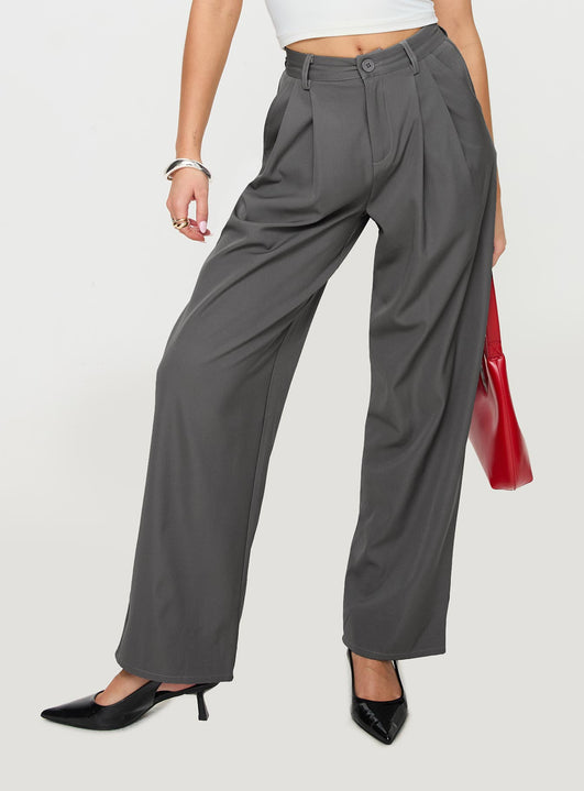- High rise fit, straight leg, subtle pleats at waist, zip & button fastening, belt looped waist, twin hip pockets