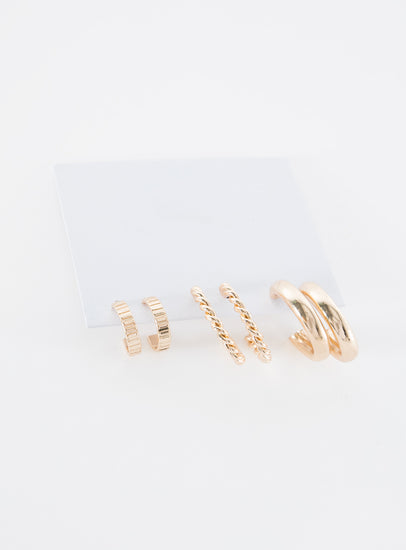 Gold-toned earring pack Set of 3 pairs, hoop design, stud fastening