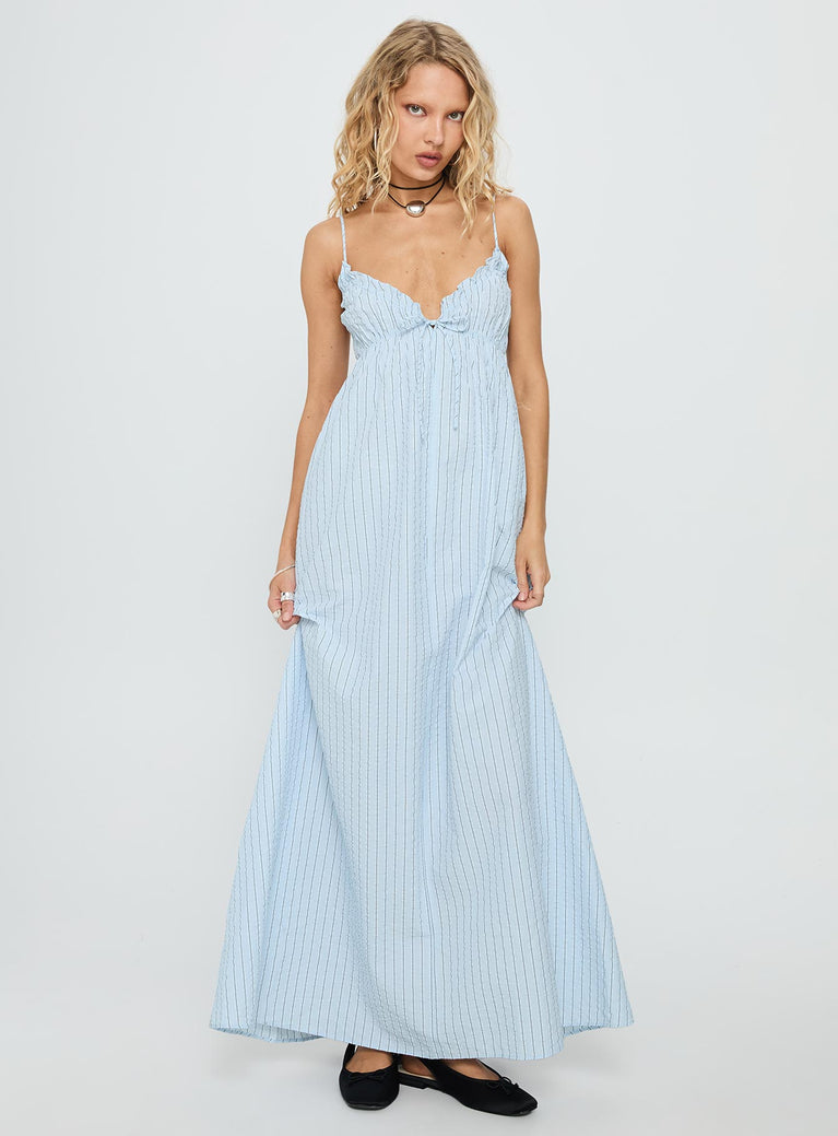 - V-neckline, bust tie detail, soft pleats at hem, adjustable straps
