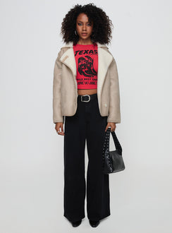 - Faur fur leather, classic collar, button-down closure, two front front, drop shoulders, oversized fitting