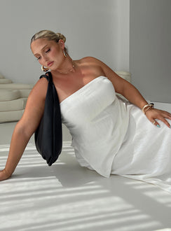- Silicon strip, invisible zipper on side, side split detail, partially open back