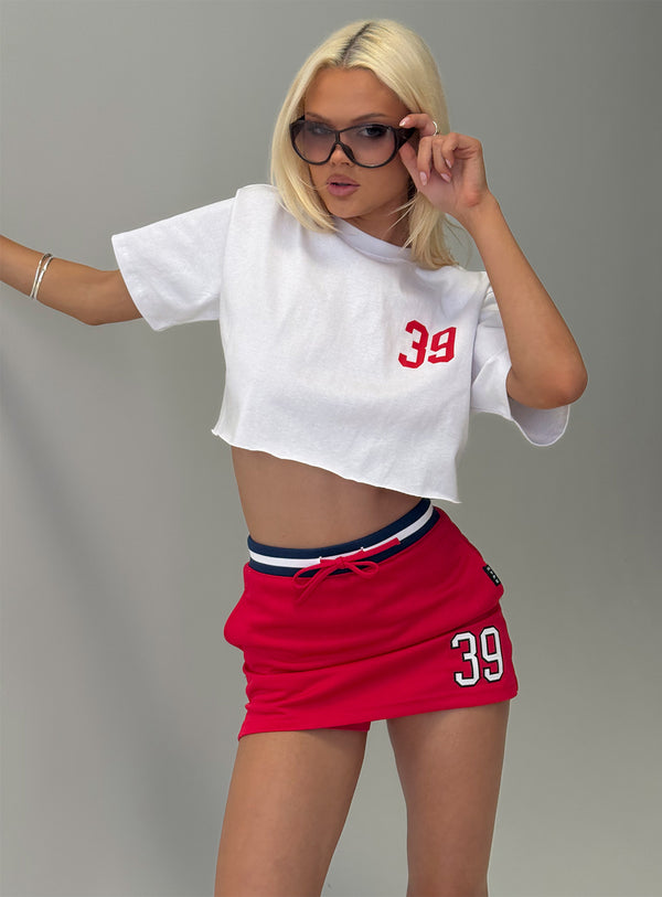 - Crew neck, number 39 detail, hype & vice detail, raw cut hem, cap sleeves, crop