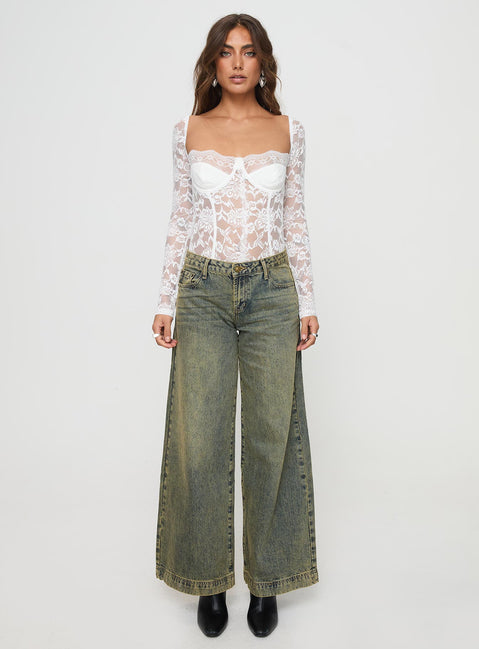 Cadrot Long Sleeve Lace Bodysuit White