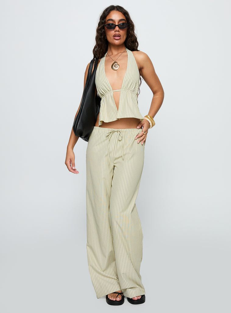 - Halter top, gathered ruched bust, split hem, tie fastenings