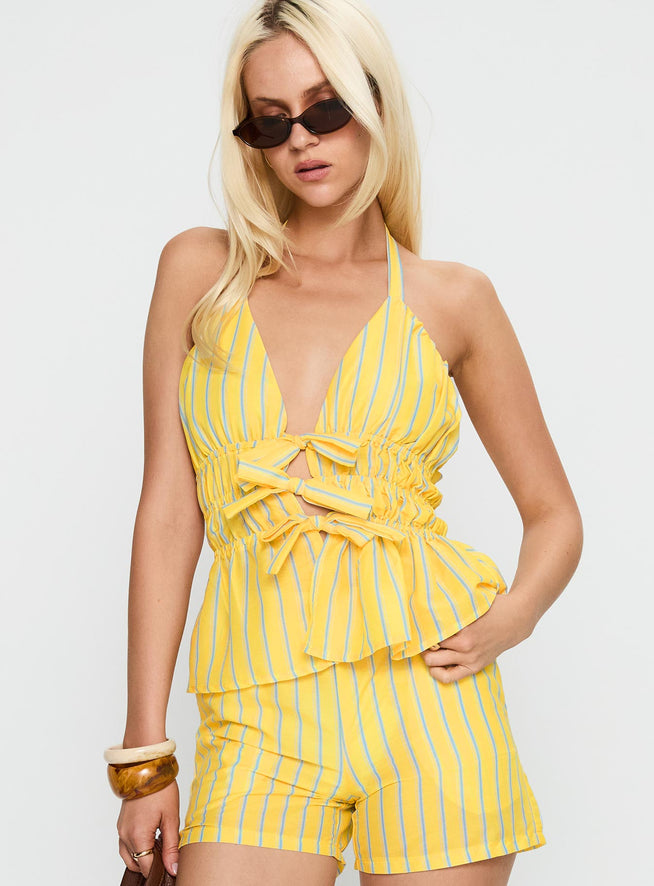 Delicacy tie detail top yellow stripe