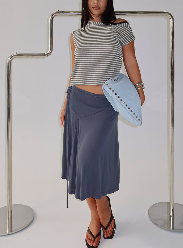 - Short sleeve top in stripe print with puff sleeves