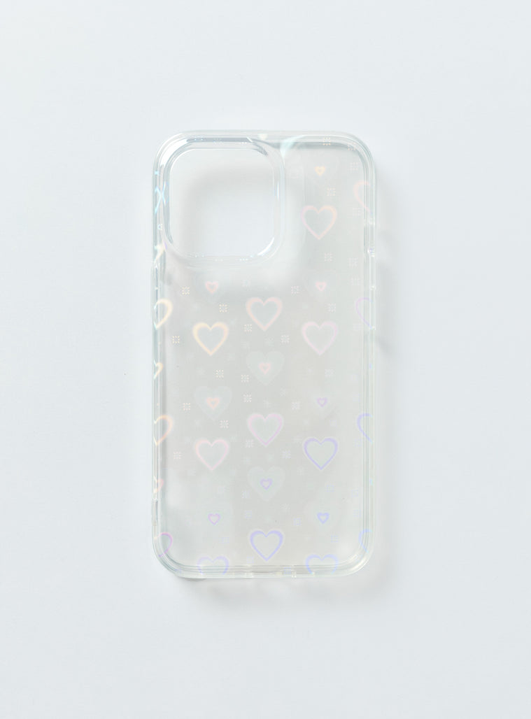 iPhone case Clear plastic style Iridescent heart print Lightweight