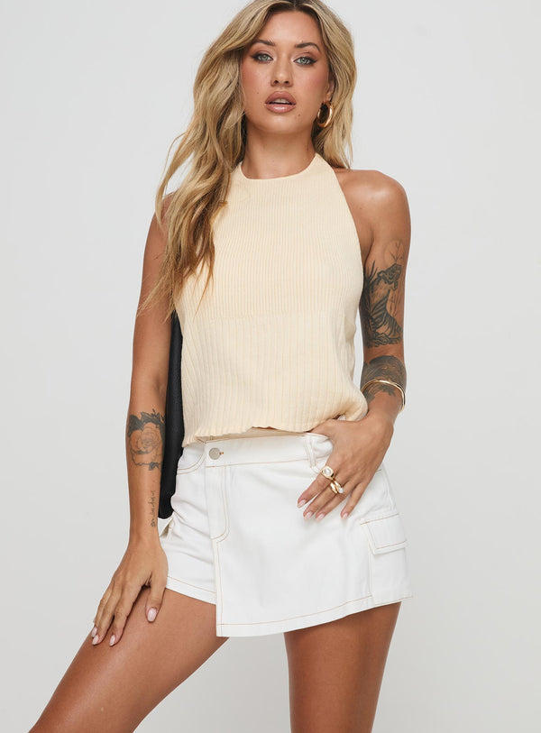 - Adjustable shoulder straps, scooped neckline, tie fastening at bust