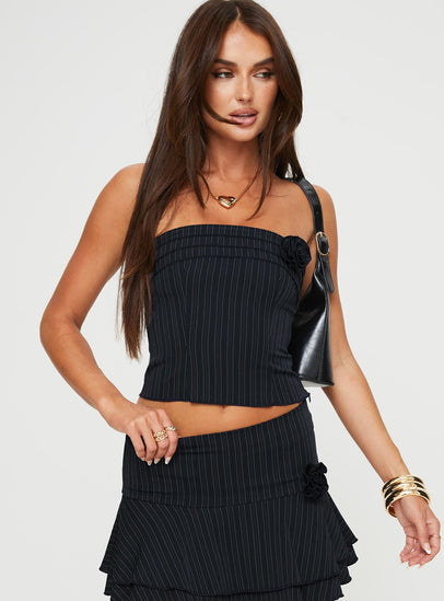 Evodia rosette top pinstripe navy