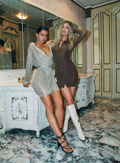 Friday Fever Mini Dress Brown has a rating of 4.3 stars based on 13 reviews.
