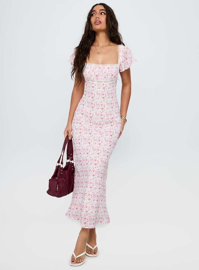 - Square neck, lace trim, zip closure at side, cap sleeves, shirred back, straight hem