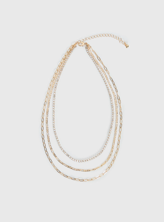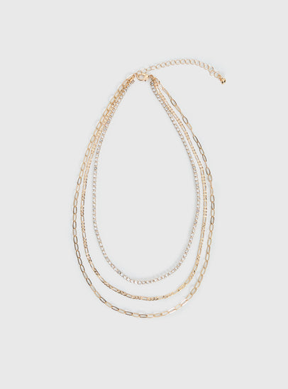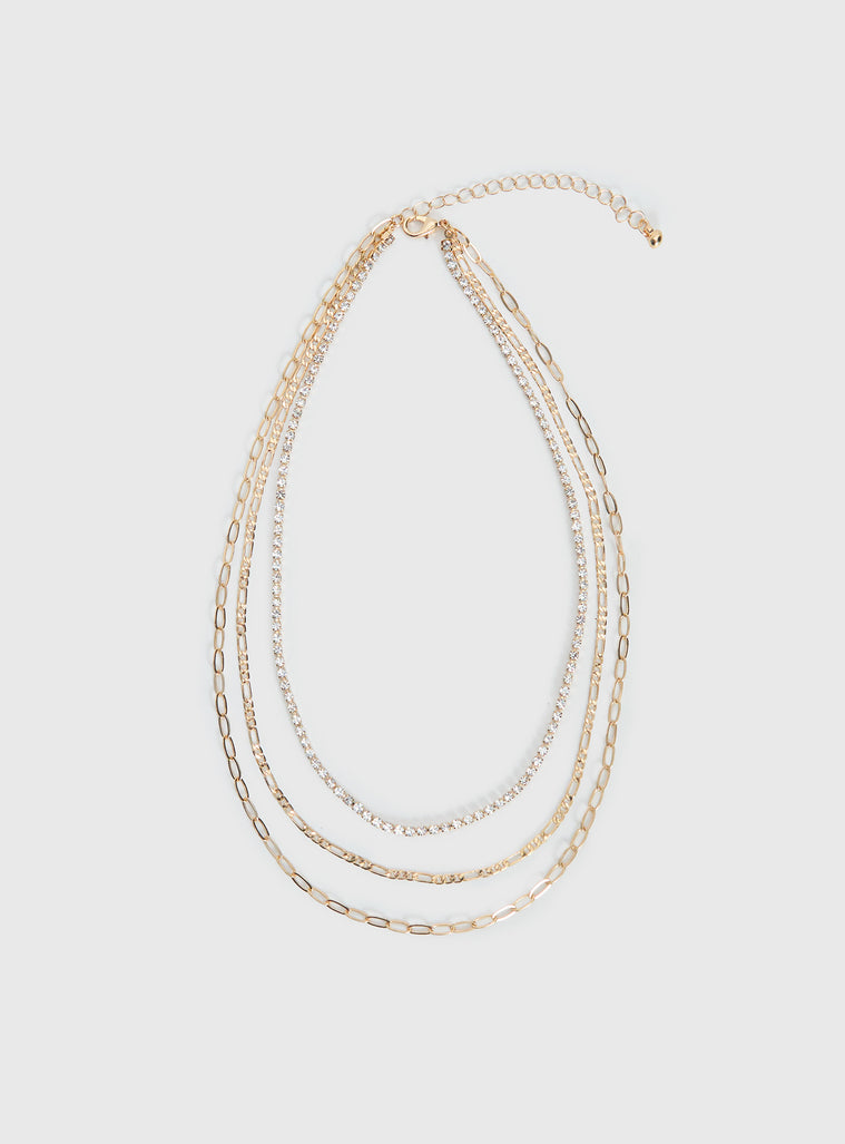 - Gold-toned, 3 layered design, contrasting chains, lobster clasp fastening, adjustable length