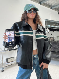 Goldsmith Faux Leather Bomber Jacket Black / Green