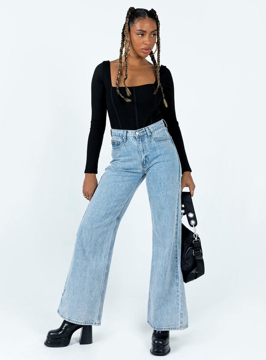 Serenitia Mid Rise Straight Leg Jeans Light Wash
