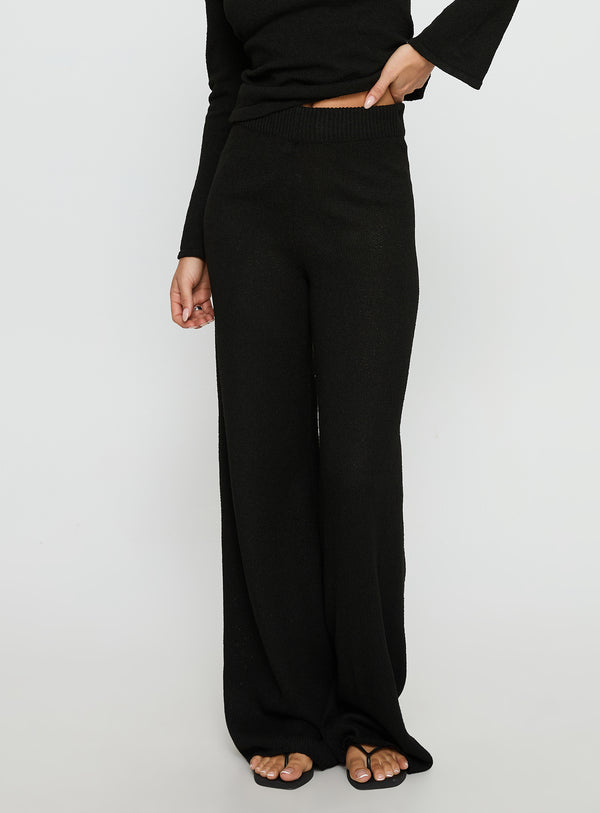 front view of model wearing Princess Polly Jaede Off Shoulder Knit Sweater Black