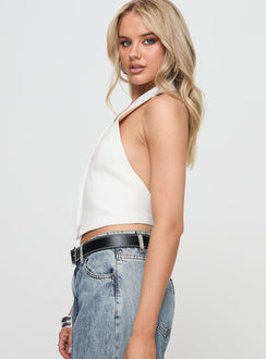 - V-neckline, hook & eye fastening at front, adjustable strap at back
