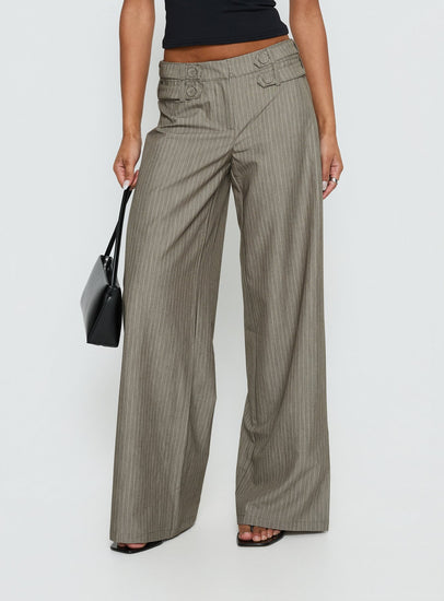 Jette tailored buckle pant taupe pinstripe