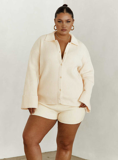 Jhett long sleeve knit shirt cream curve