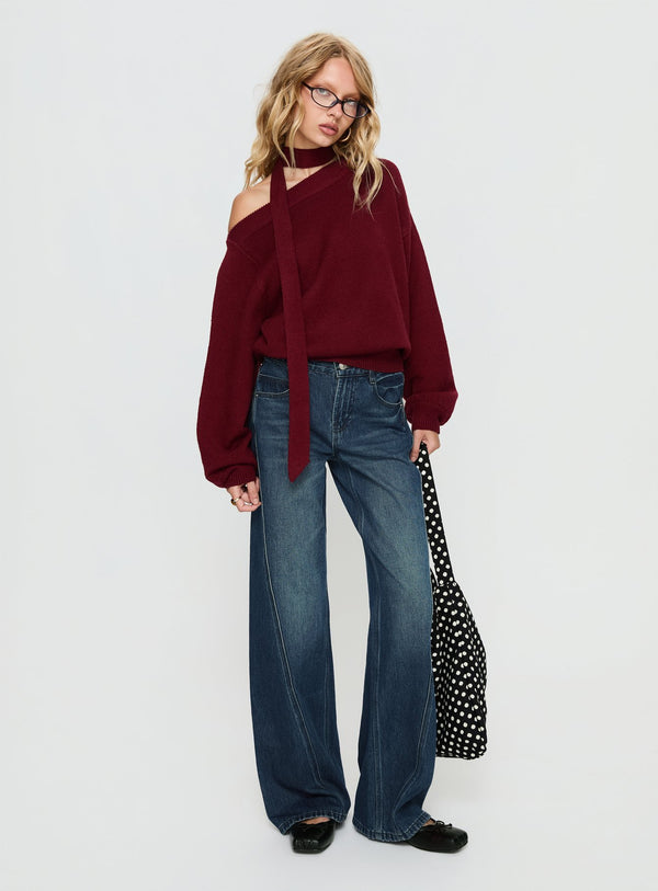 - Dark blue washed, belt looped waist, five pockets, button & zip closure, branded patch at back