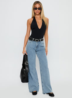 - Press clip buttons at base, cheeky bottoms, adjustable halter straps, low back