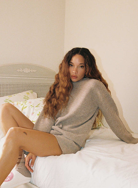 - Ribbed-knit material, mock neck, long sleeves, relaxed style
