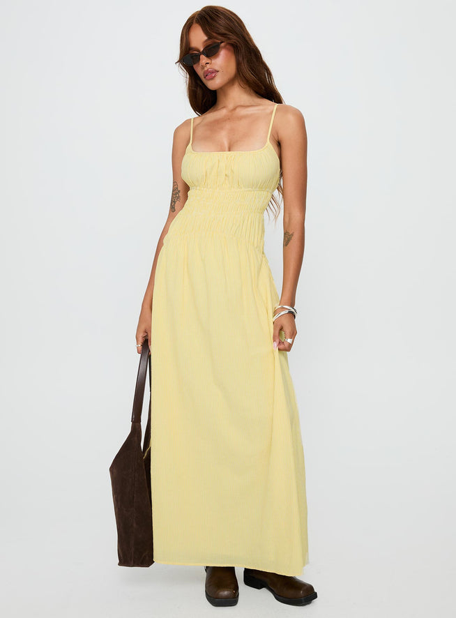 Magnolie shirred maxi dress yellow stripe
