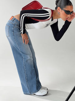 Azula mid rise wide leg denim jean mid blue