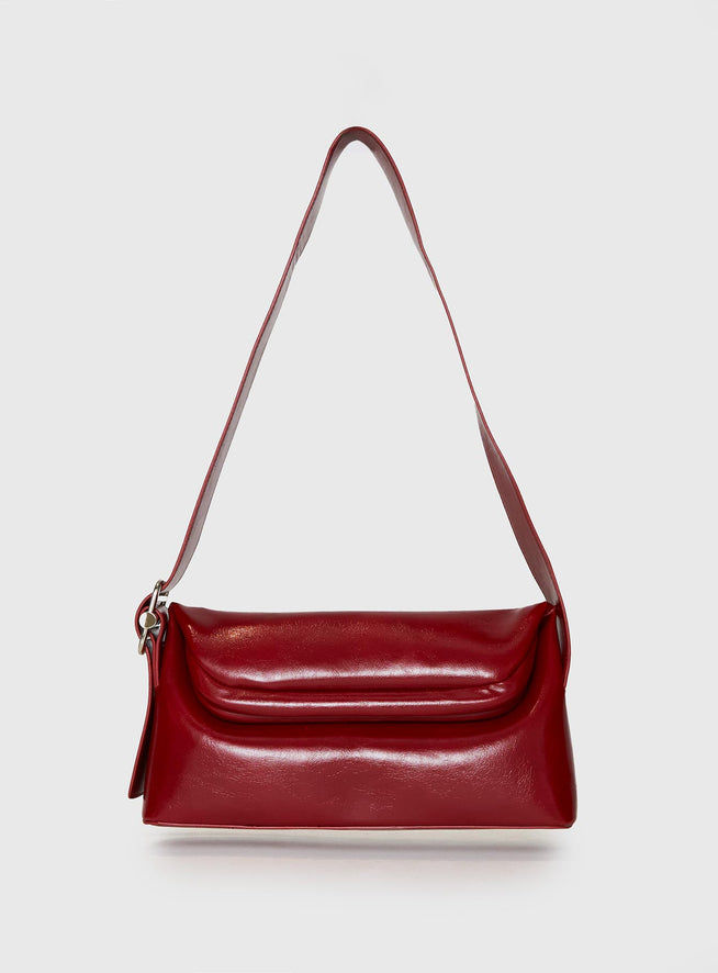 - Faux leather, silver toned hardware, buckle detail, adjustable shoulder strap, kiss lock claspÂ