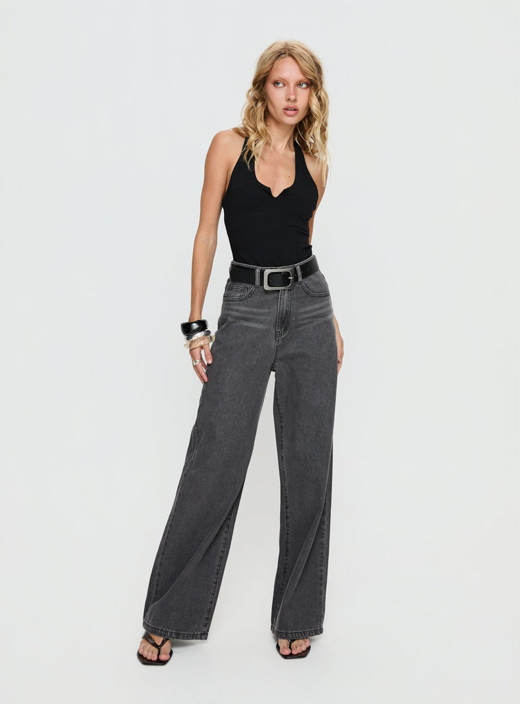 - Belt looped waist, button & zip closure, five pockets, branded patch at back
