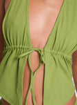 front view of model wearing Princess Polly Obviously Halter Top Green Sleeveless Plunger