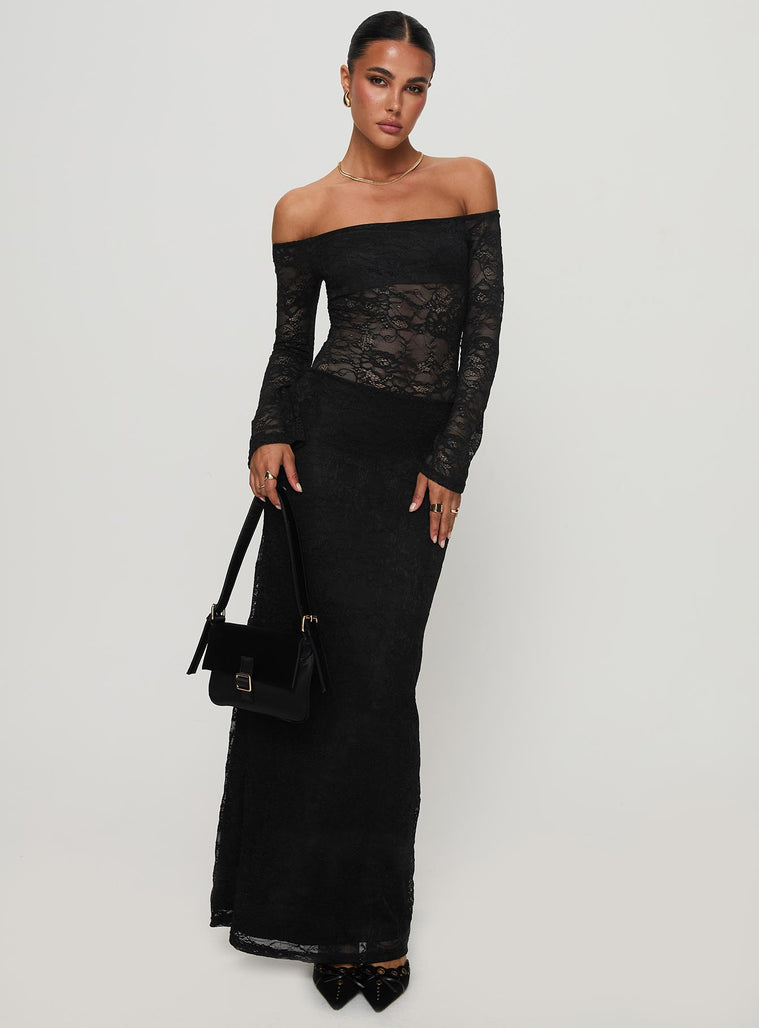 Pinot grigio long sleeve lace maxi dress black