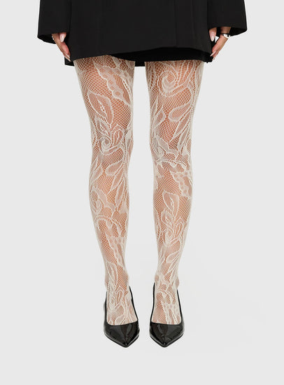 Places To Go Sheer Lace Tights White