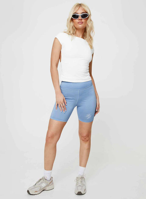 Princess polly bike shorts cursive text pale blue/ eggshell