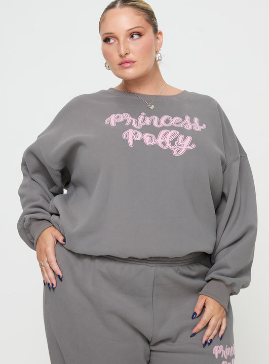 Princess polly crew neck sweatshirt puff text charcoal curve