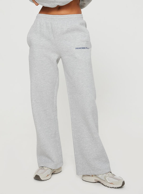 Princess Polly Straight Leg Track Pants Text Grey Marle
