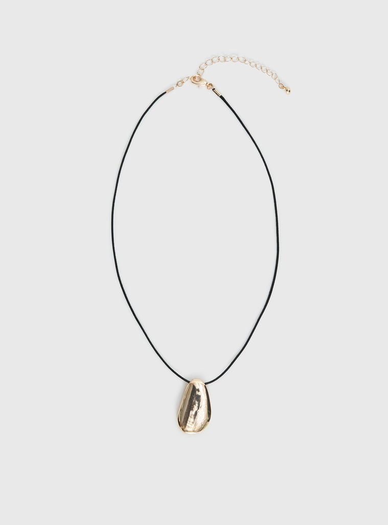- Gold-toned pendant, black cord, lobster clasp fastening, adjustable chain