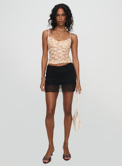 - Floral detailing, v-neckline, adjustable straps, frill hem, sheer fabric