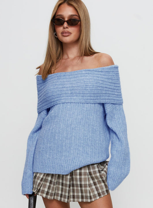 Snowie Off Shoulder Knit Sweater Blue