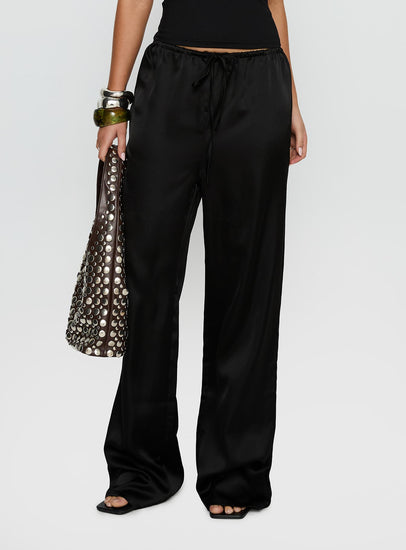 - Elasticated waist, tie closure, pocketless, mid-rise fit