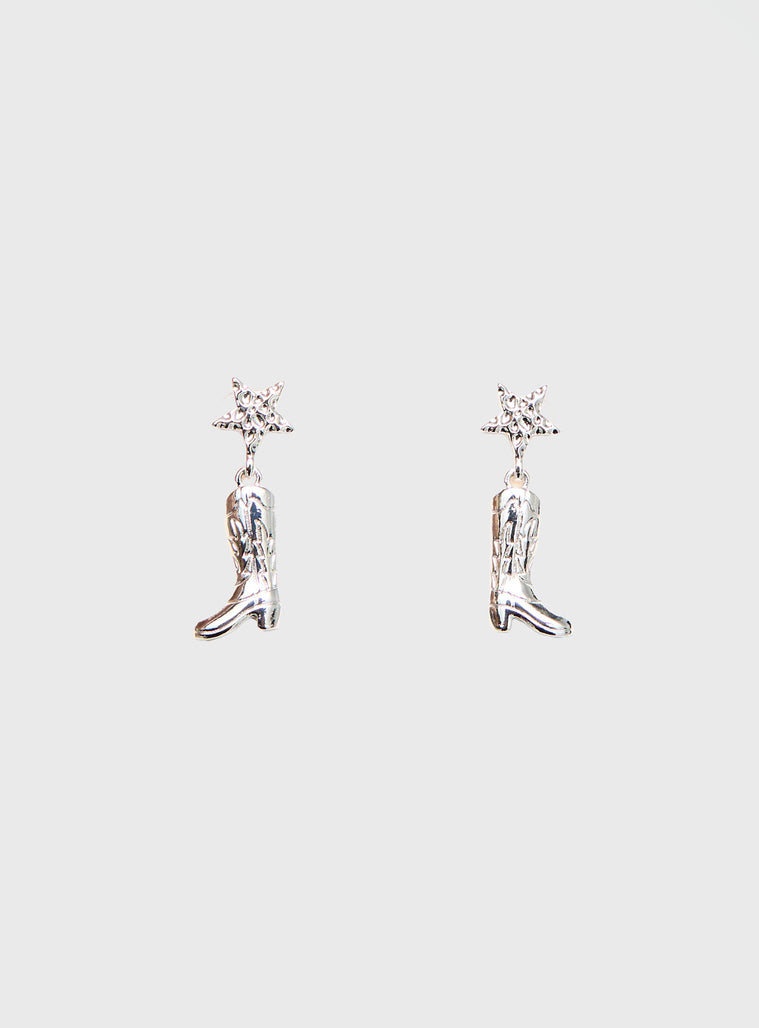 Drop style, star & cowboy boots design, silver-toned hardware, stud fastening