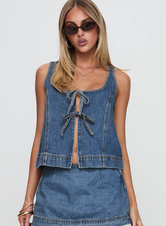 Stefenie Denim Tie Top Mid Wash has a rating of 4.5 stars based on 35 reviews.
