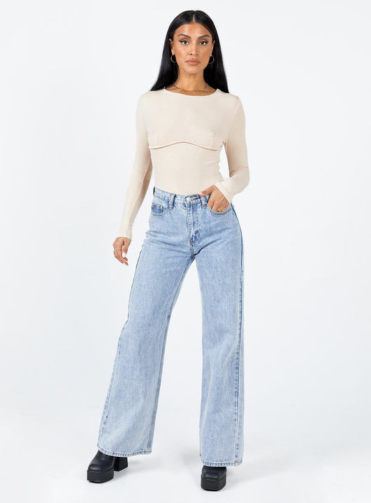 Serenitia Mid Rise Straight Leg Jeans Light Wash