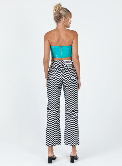 The ragged priest high rise straight leg wave jeans glitter denim silver / black