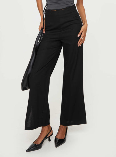 - Straight leg, invisible zip fastening at side, waist tie fastening