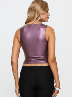 side view of model wearing Princess Polly Two To Tango Top Purple Sleeveless Square Neck